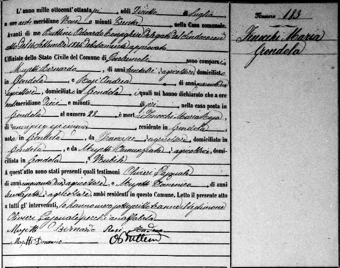 "Italia, Massa e Carrara, Massa, Stato Civile (Tribunale), 1866-1929," images, FamilySearch (https://familysearch.org/pal:/MM9.3.1/TH-1942-33169-30989-33?cc=2043539&wc=MC55-8NL:349110701,349491801,349491802 : accessed 03 Jul 2014), Massa-Carrara > Pontremoli > Morti 1866-1875, 1877-1881, 1884-1894 > image 2074 of 3131; citing Tribunale di Massa.