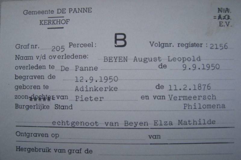 - geb. 11 FEB 1876 in Adinkerke - ovl. 09 SEP 1950 in De Panne