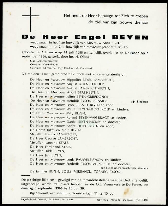 Engelbertus, beter gekend als Engel, werd geboren op 14 juli 1888 in Adinkerke.1
