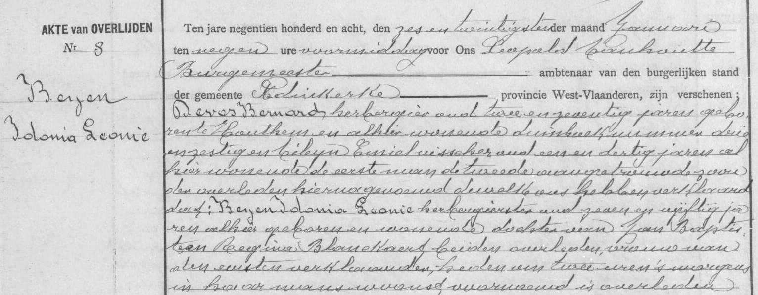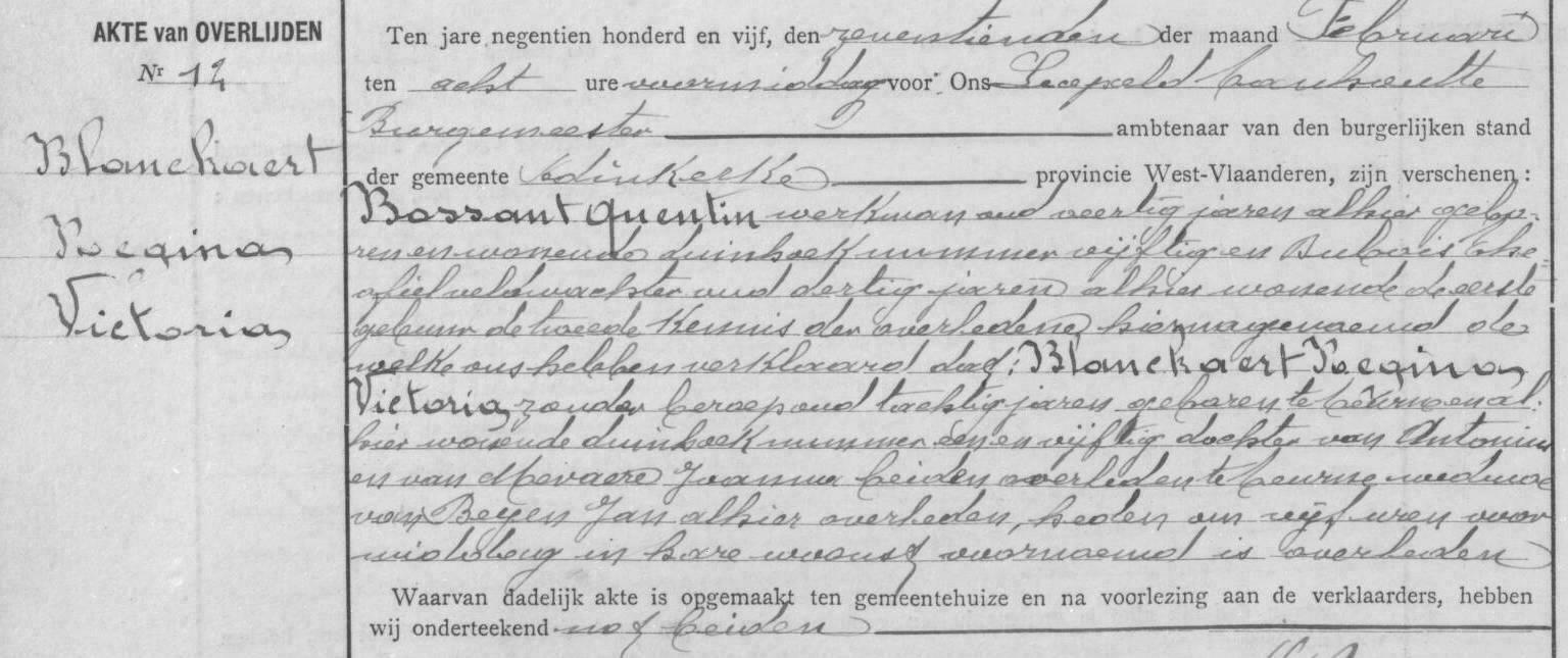 Overlijdensakte uit 1905 te Adinkerke.