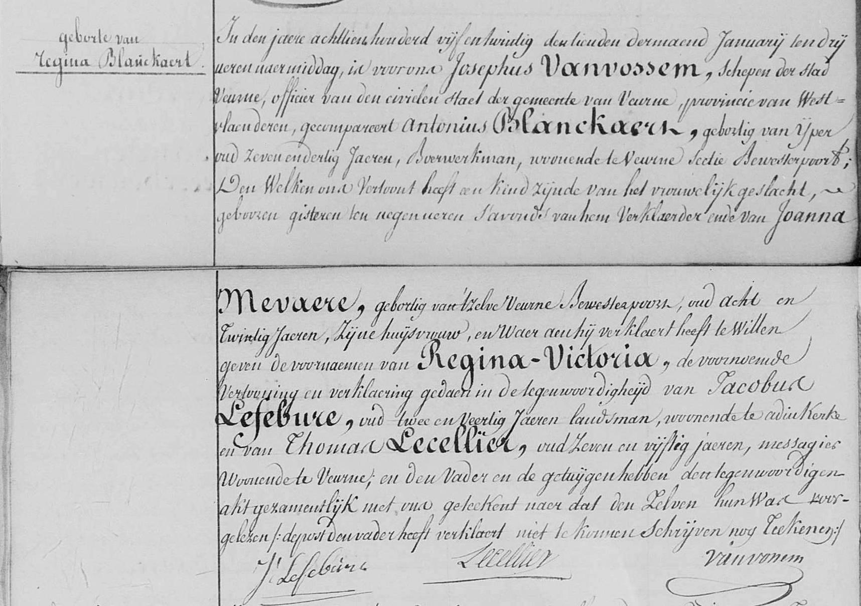 Geboorteakte uit 1825 te Veurne.
