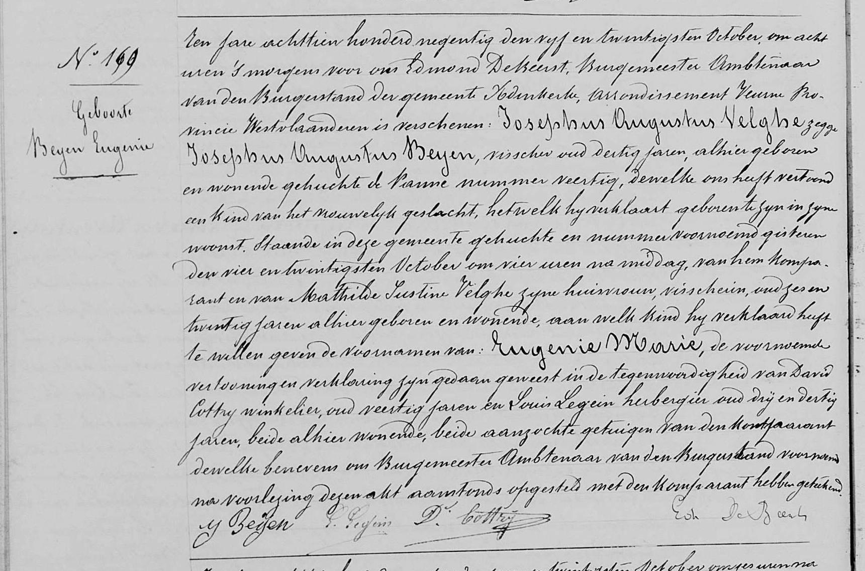 BSADINK vermeldt 18-6-1819 als geboortedatum wat niet kan gezien zijn vader van 1818 is en zijn moeder van 1820. De geboorteakte van Marie Juliette vermeldt trouwens zijn leeftijd van 46 jaar (1905 -46 = 1859).