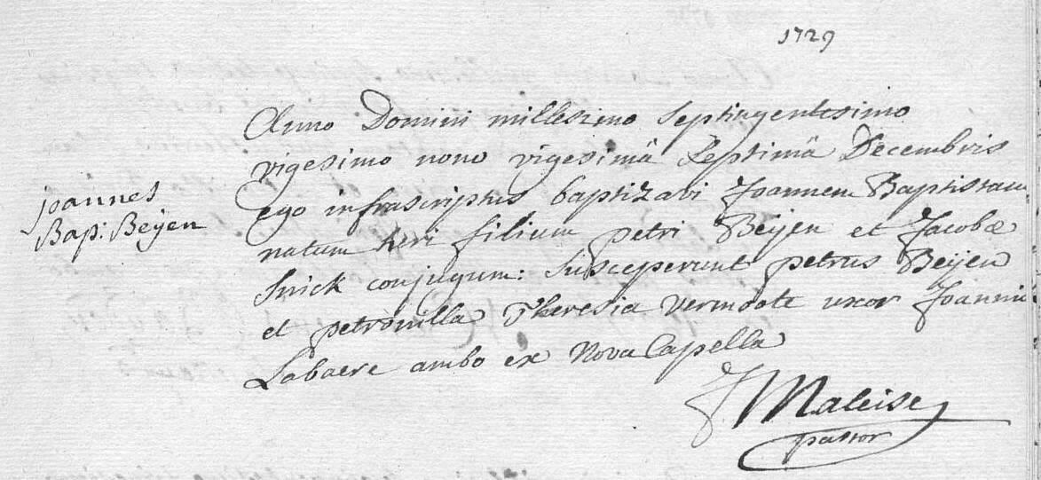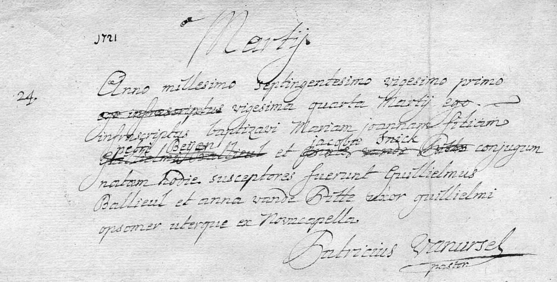 Nieuwkapelle en zijn doop had plaats op 29 november 1700.