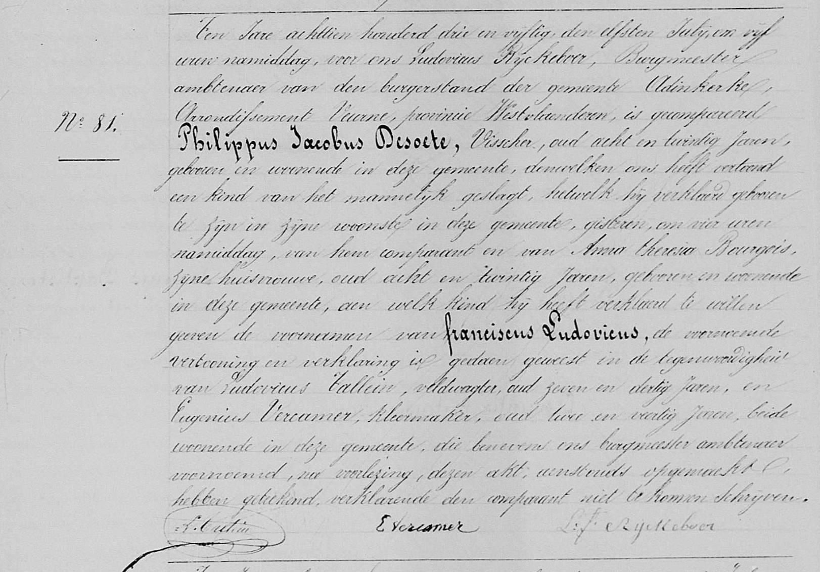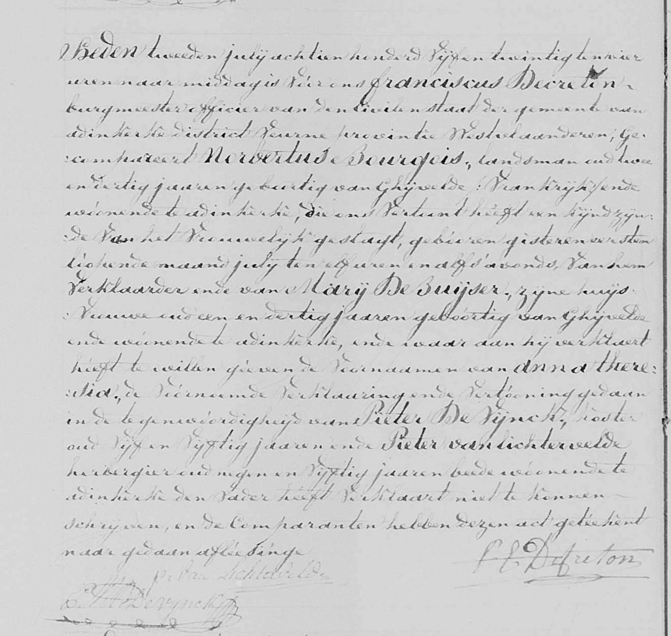 - Geboorteakte uit 1825 te Adinkerke.