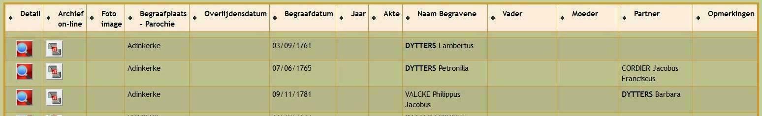 Uittreksel uit de database van de vrijwilligers van het Rijksarchief te Brugge.