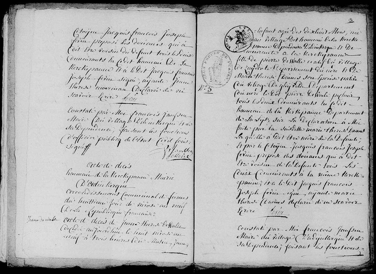 De aangifte van de geboorte werd pas op 17 maart 1799 in de registers van de burgerlijke stand geregistreerd.