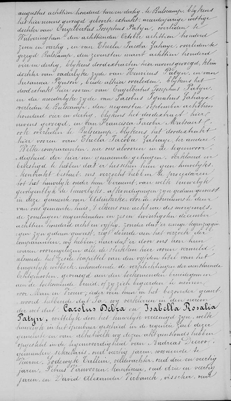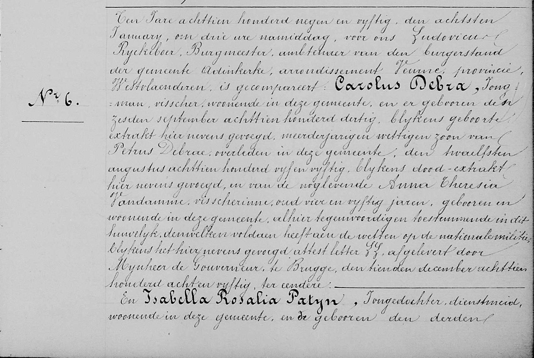 Huwelijksakte uit 1859 te Adinkerke (deel 2).