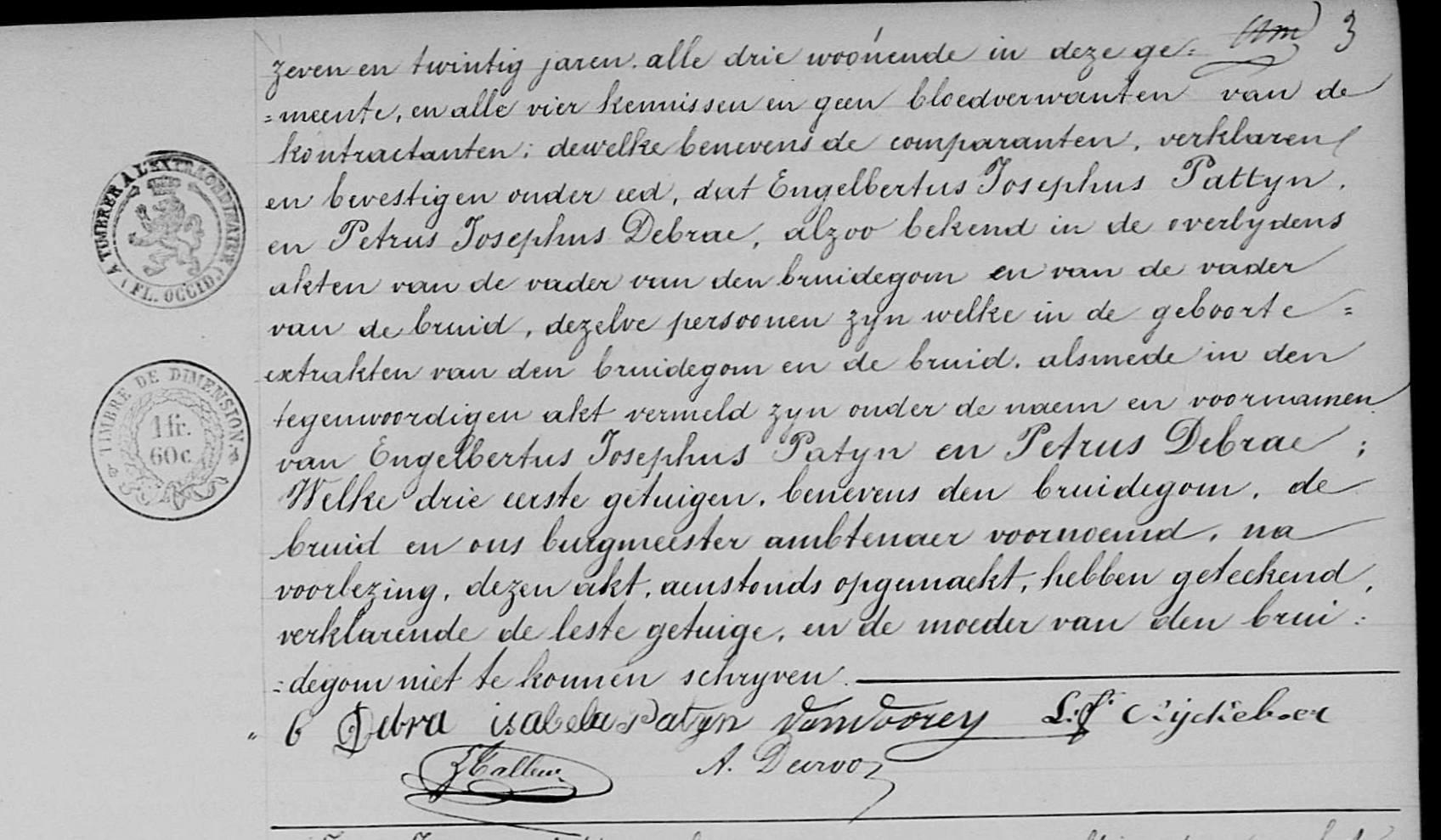 Huwelijksakte uit 1859 te Adinkerke (deel 3).