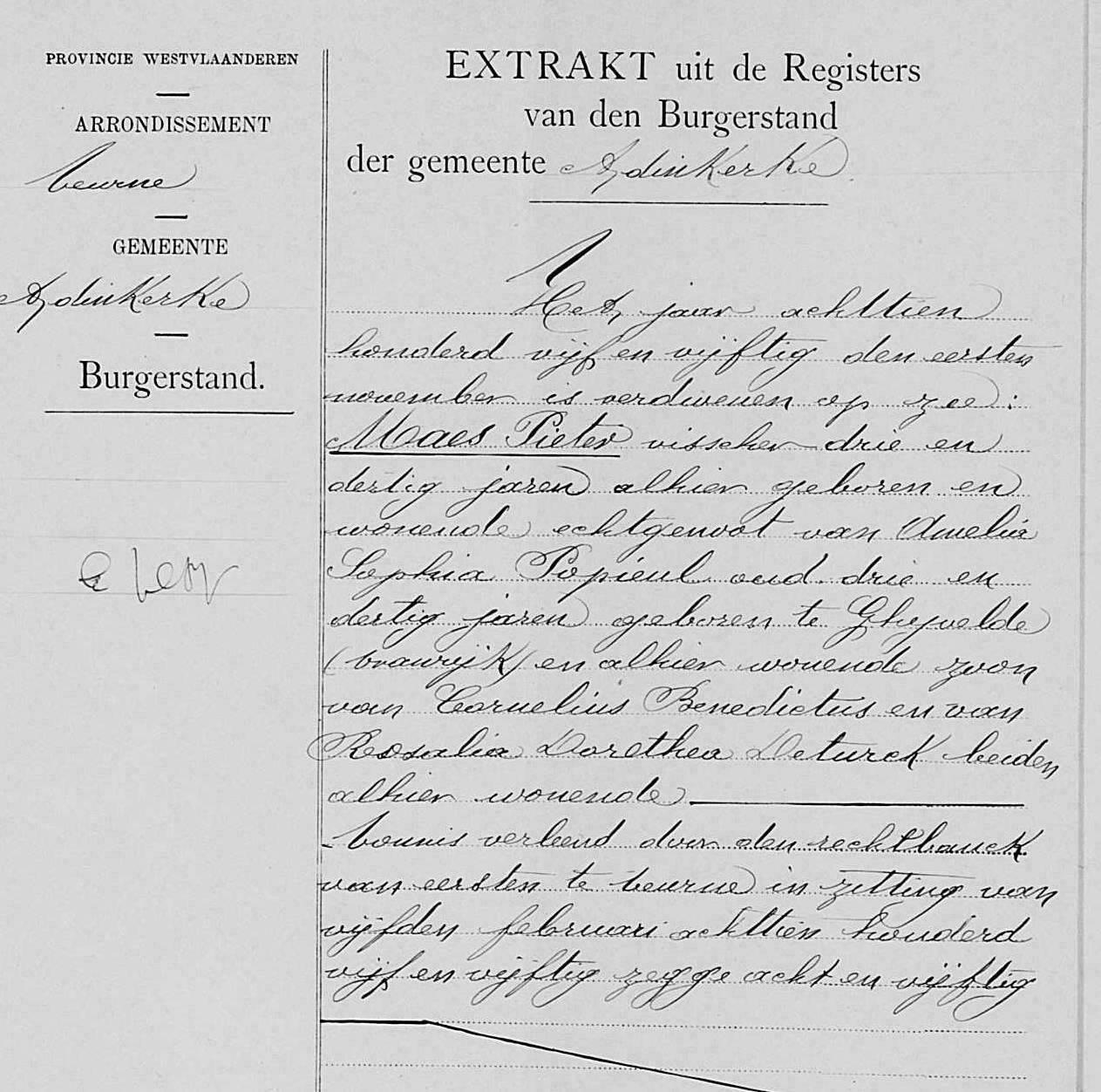 Joannes, beter gekend als Pierre, werd geboren op 28 april 1823 in Adinkerke.4 Hij overleed op 32-jarige leeftijd op 1 november 1855 op zee.5