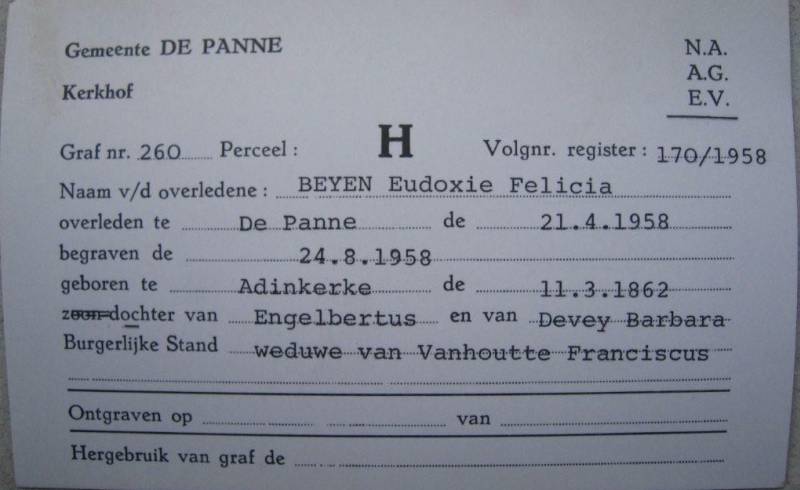 - geb. 07 OKT 1819 in Adinkerke - ovl. 02 DEC 1908 in Adinkerke, Panne