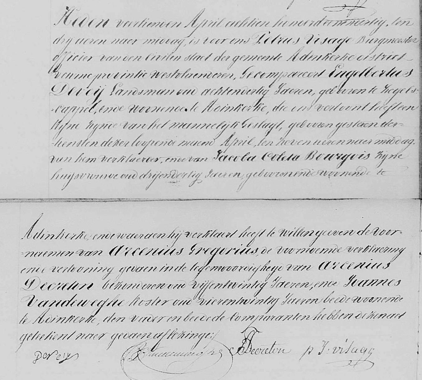 Geboorteakte uit 1831 te Adinkerke.