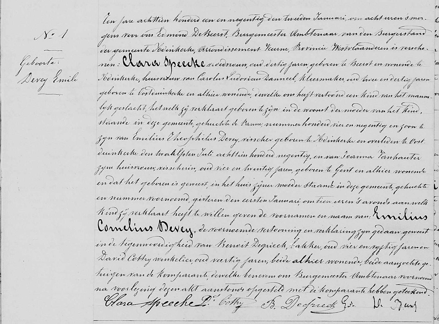 Geboorteakte uit 1891 te Panne.