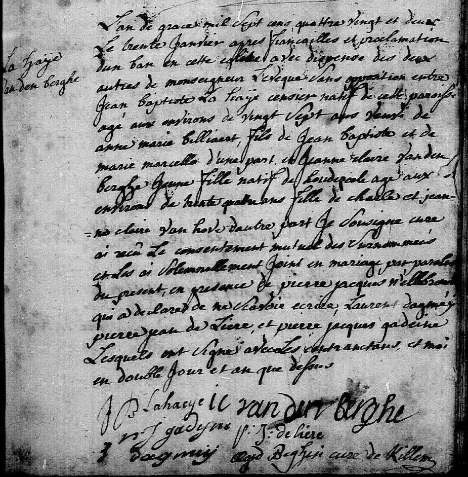 Huwelijksakte uit 1782 te Killem.