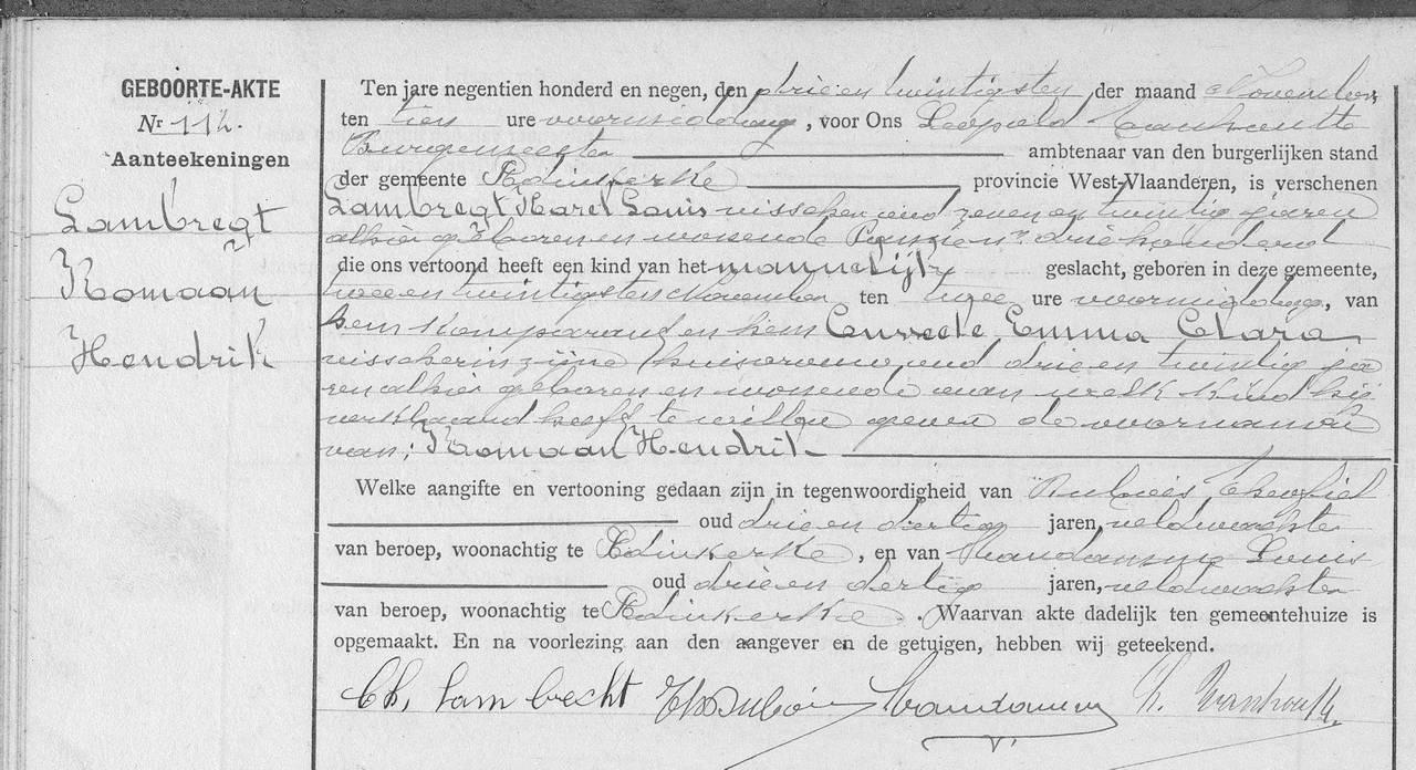 Geboorteakte uit 1909.