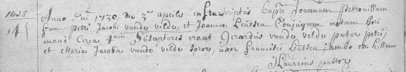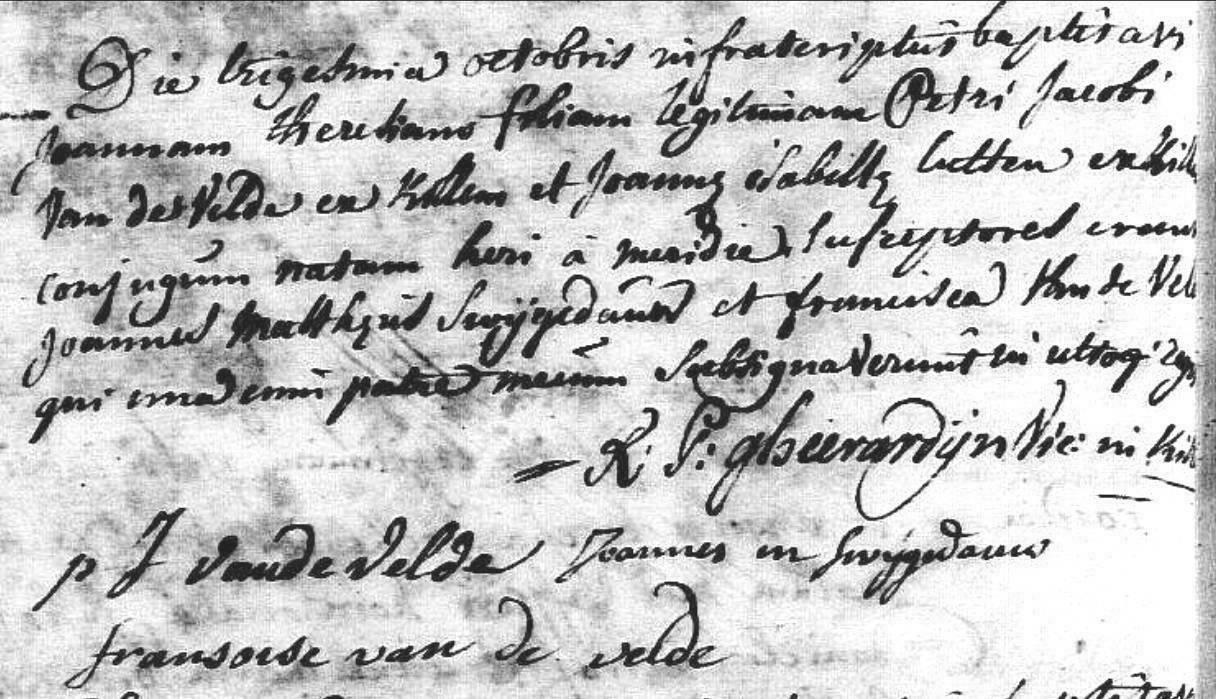 Joanna was doopdrager van Jacobus Eugenius Staes (1753-1753) en was volgens de doopakte afkomstig van Killem.