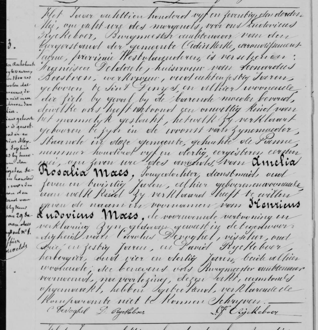 Geboorteakte uit 1852 te Adinkerke.