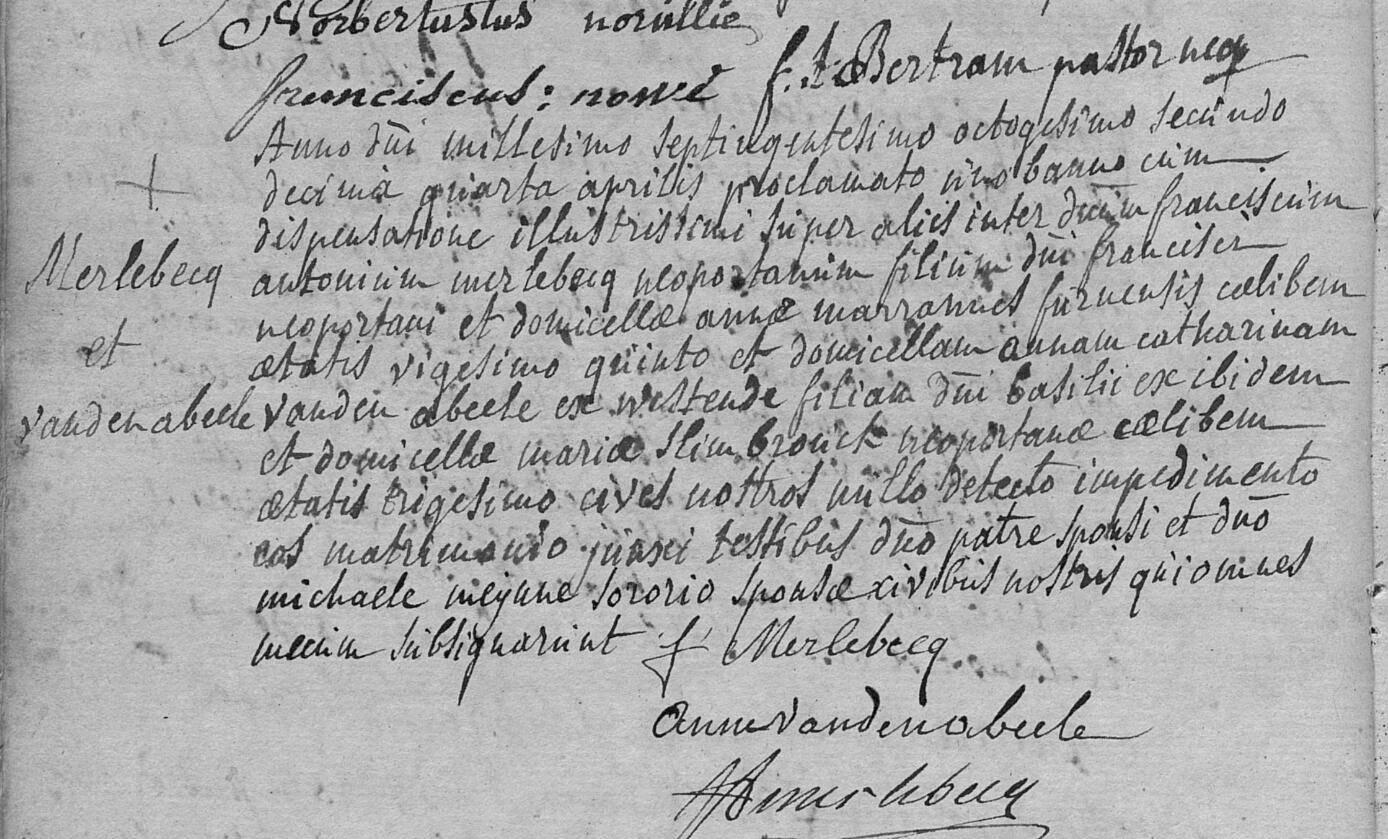 Huwelijksakte uit 1782 te Nieuwpoort.
