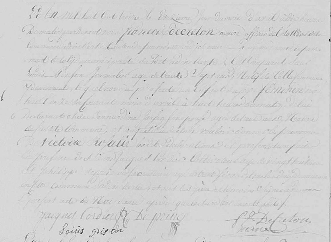 De geboorteakte van Victoria vermeldt wel degelijk "PINSON" terwijl haar vader diezelfde akte ondertekent met "PISON".