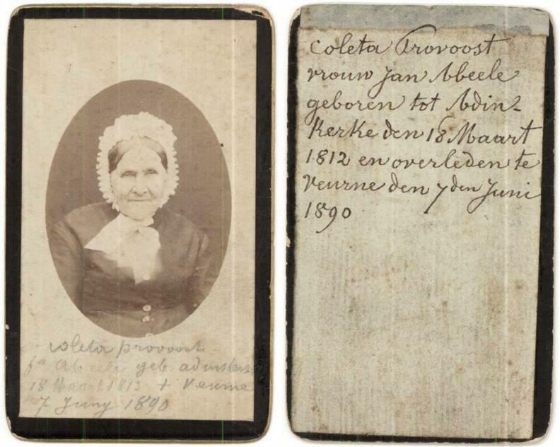 Vermoedelijk een bidprentje, maar zonder verdere opschriften. De geboortedatum moet wel degelijk 17 maart 1813 zijn en niet 18 maart 1812 zoals op de achterkant staat.