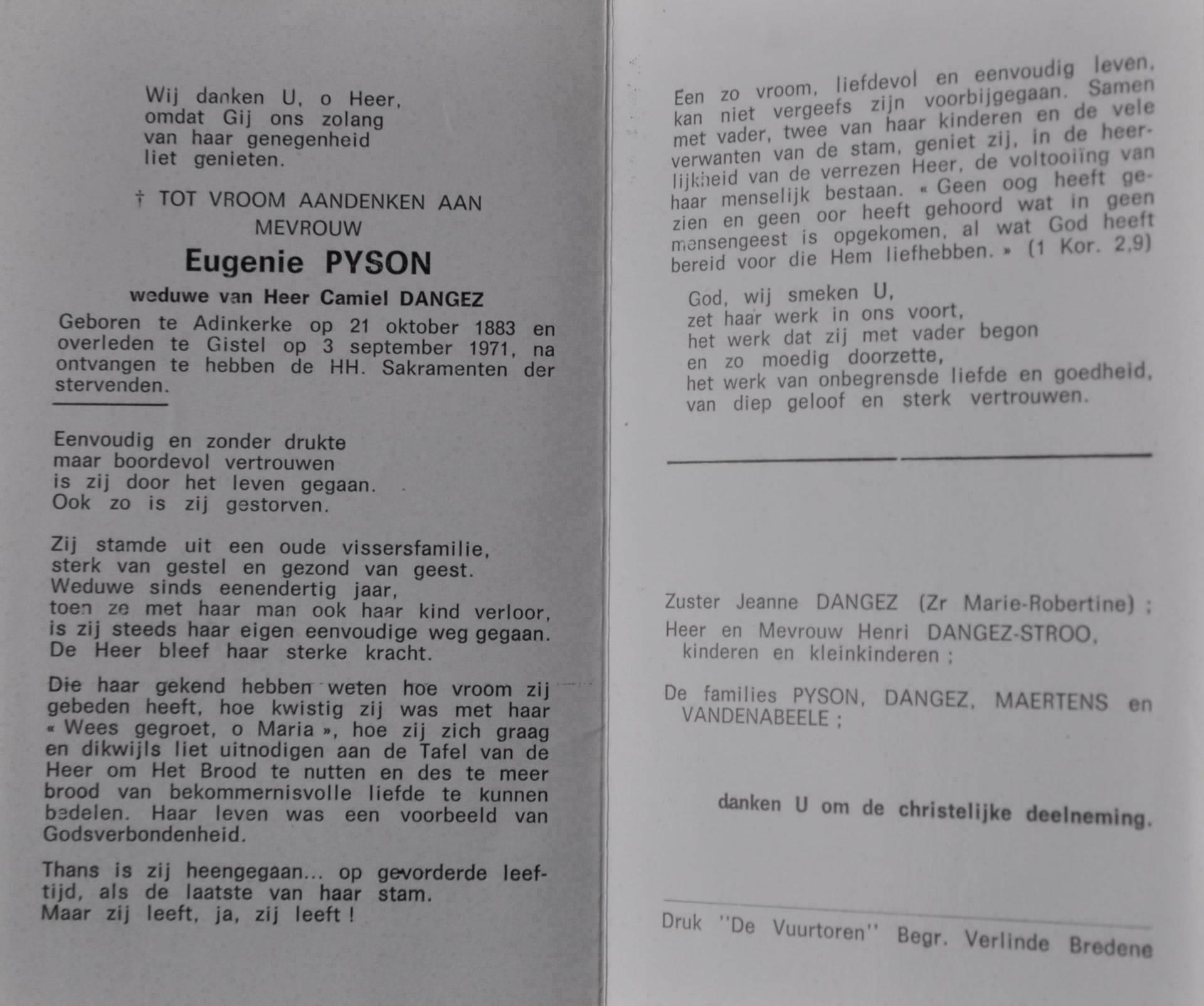 - geb. 21 OKT 1883 in Adinkerke - ovl. 03 SEP 1971 in Gistel