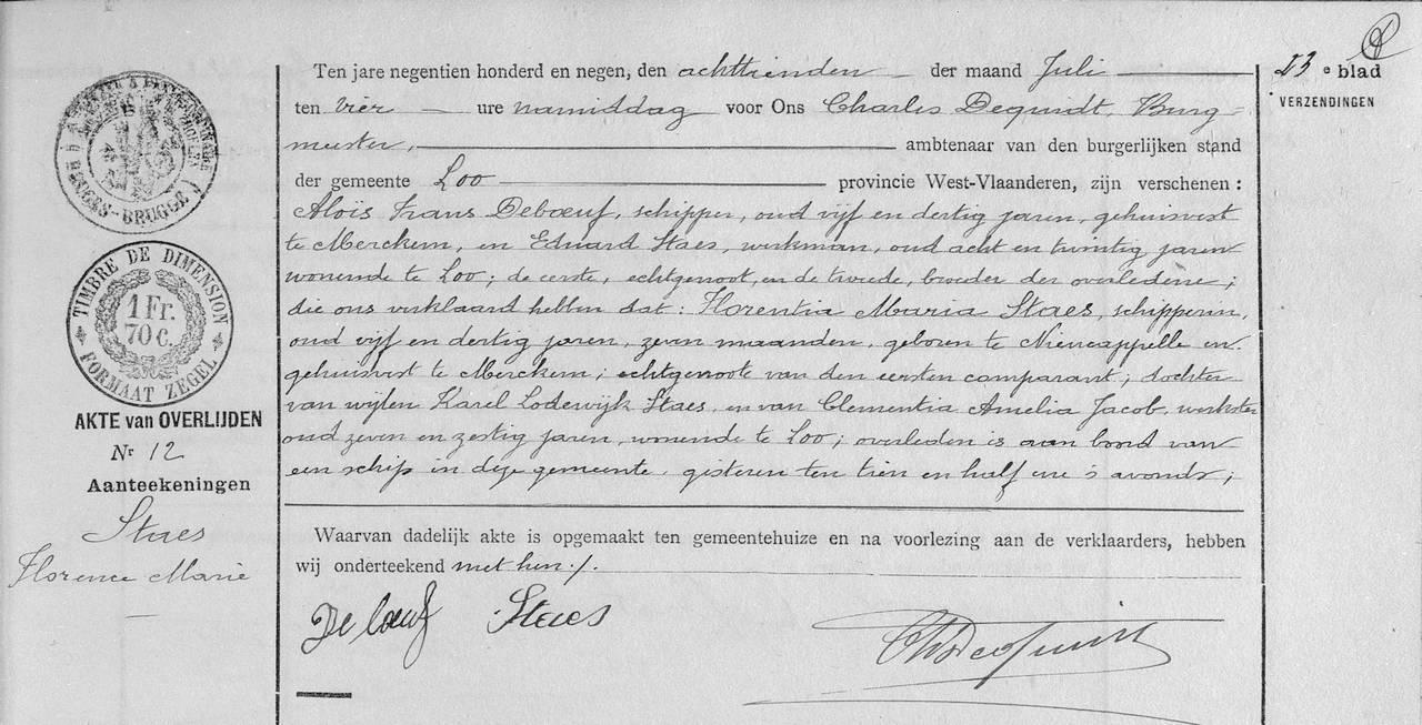 Overleden aan boord van een schip in de gemeente Lo (Loo).