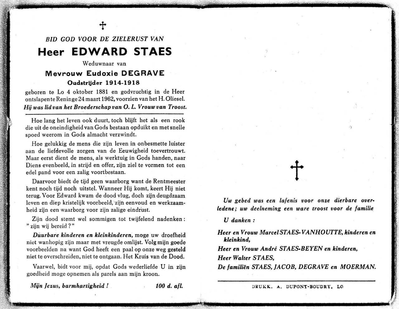 Edward en Eudoxie trouwden zowel in de kerk als voor de wet in Lo op 3 oktober 1904. 1 Zij hadden drie biologische zonen en twee biologische dochters, genaamd Marcel, André, Walter, Maria en Magdalena. Zij ook hadden een geadopteerde dochter genaamd Zoë.