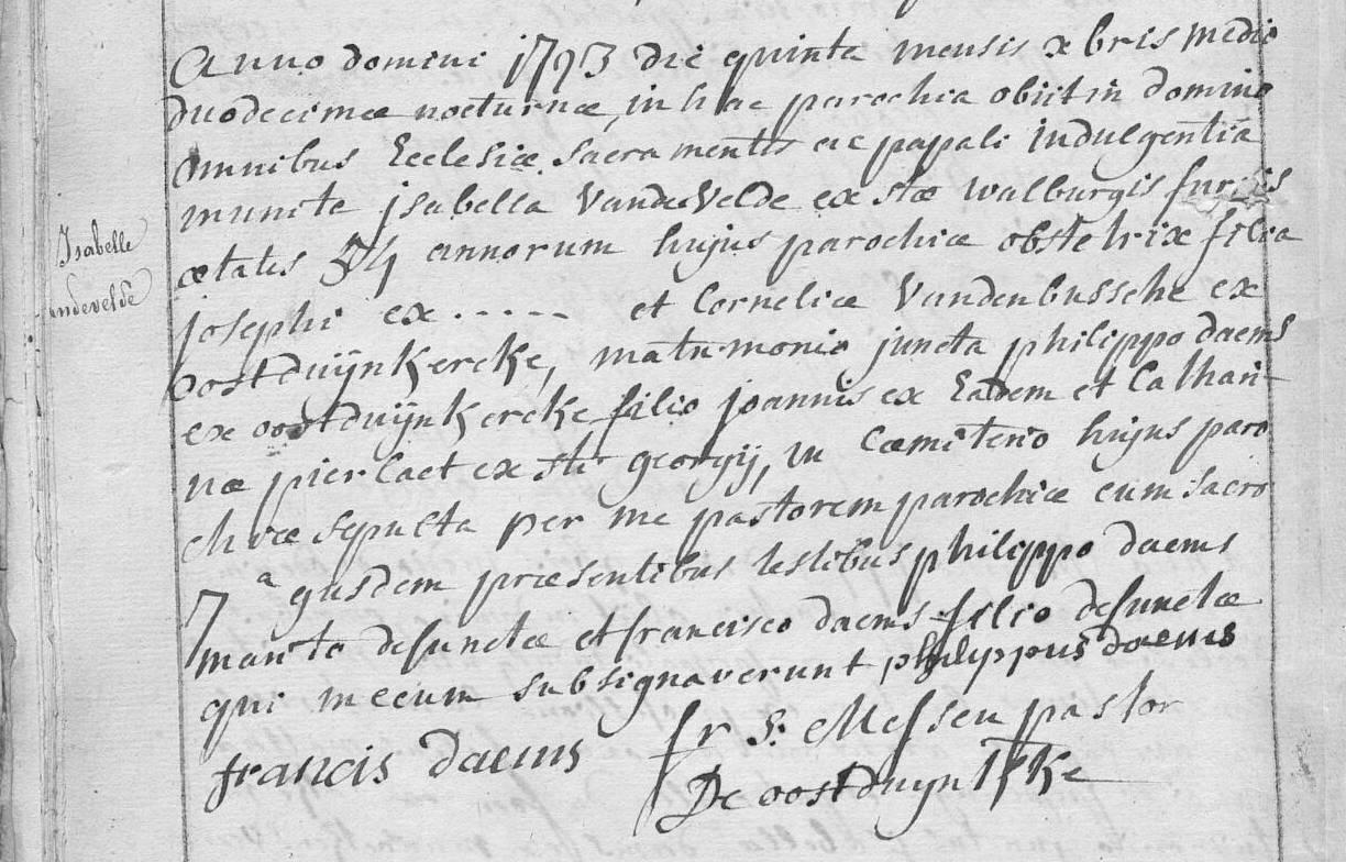 Isabella's beroep was vroedvrouw.