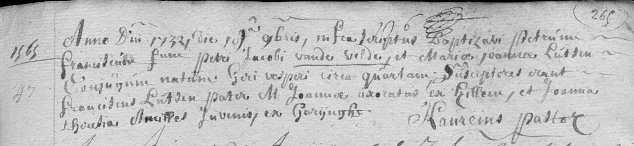 Doopheffers waren Franciscus LUTSEN (grootvader langs moeders kant) an Joanna Theresia ANCEELE [?] ex Haringe.