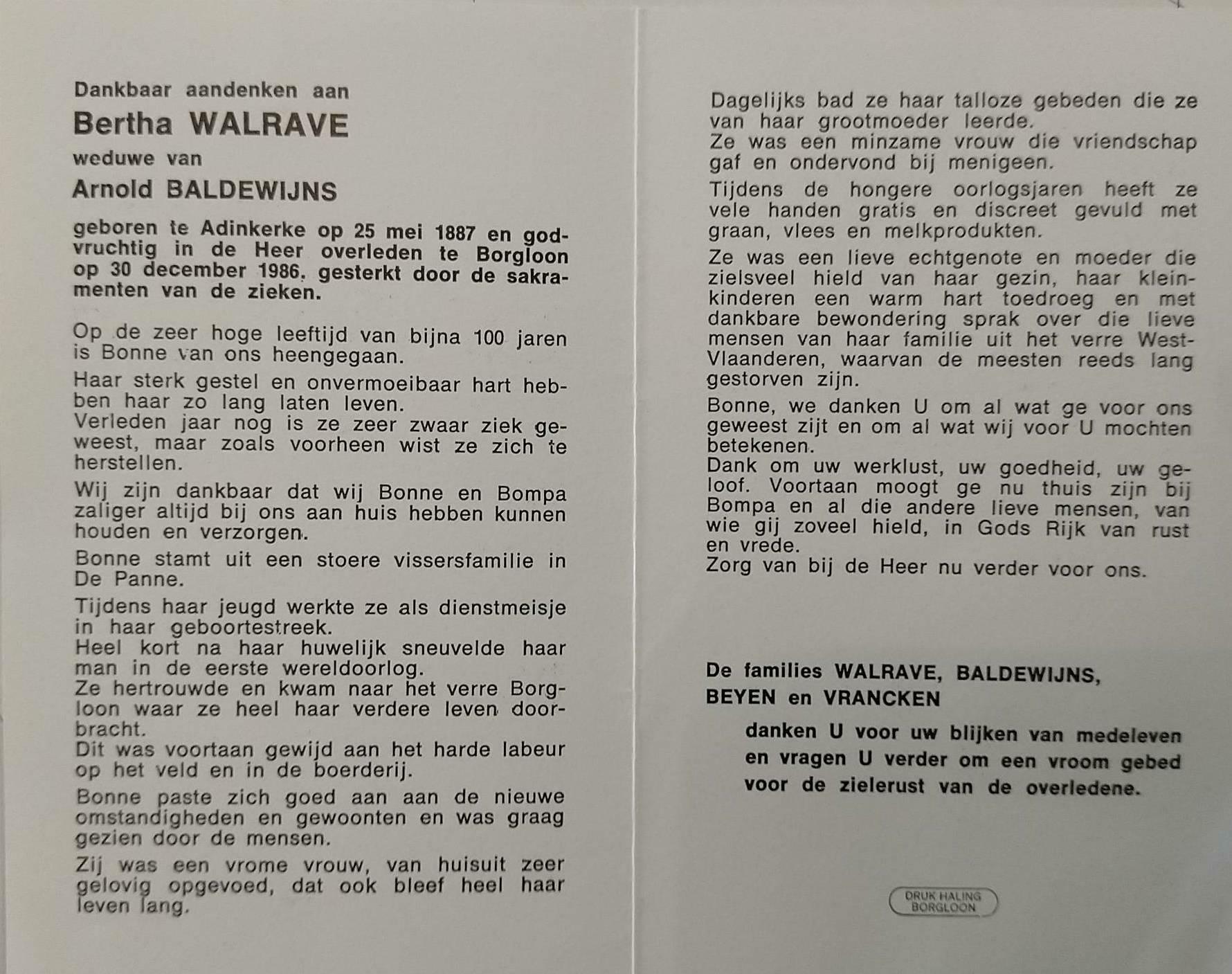 - geb. 25 MEI 1887 in Adinkerke - ovl. 30 DEC 1986 in Borgloon