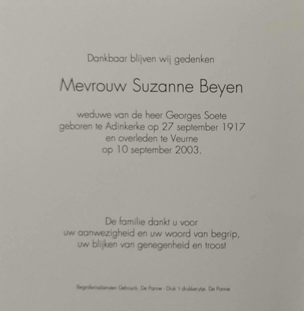 Zij overleed op 85-jarige leeftijd op 10 september 2003 in
