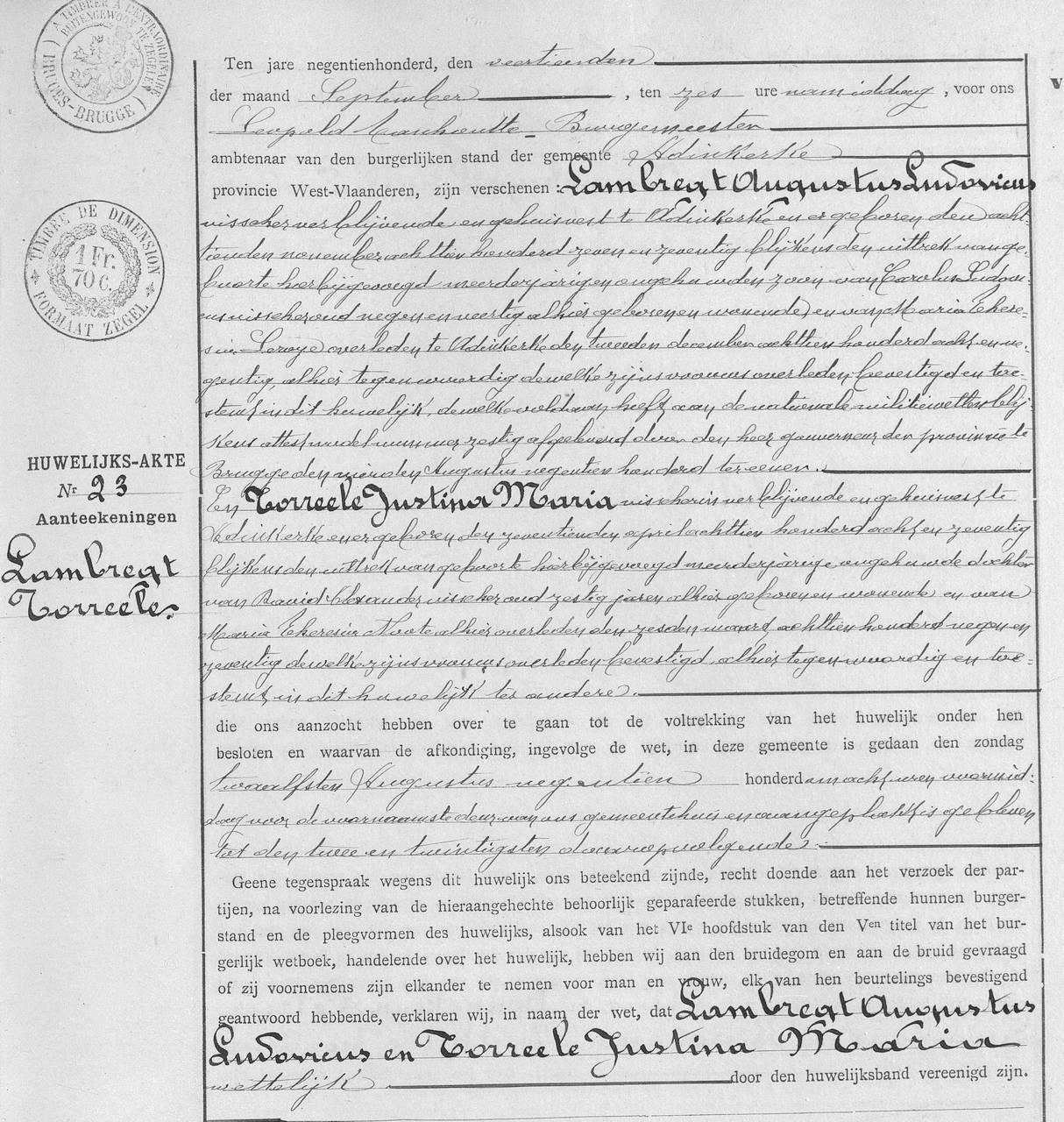 Augustus Ludovicus Lambregt & Justina Maria Torreele