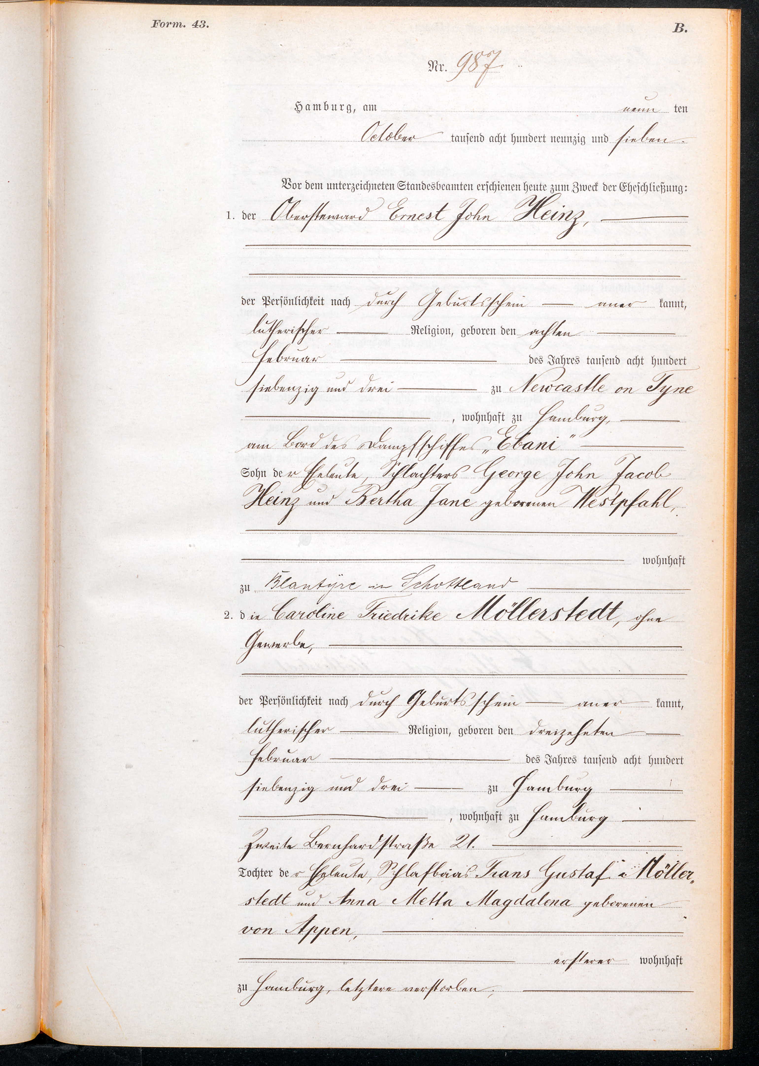 HEINZ Ernest J POTTER Constance S Liverpool, Register Office or Registrar Attended Liverpool REG_LP/272/196