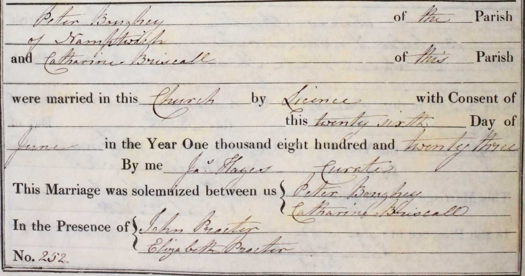 Wybunbury and his baptism took place there on June 14th, 1829.