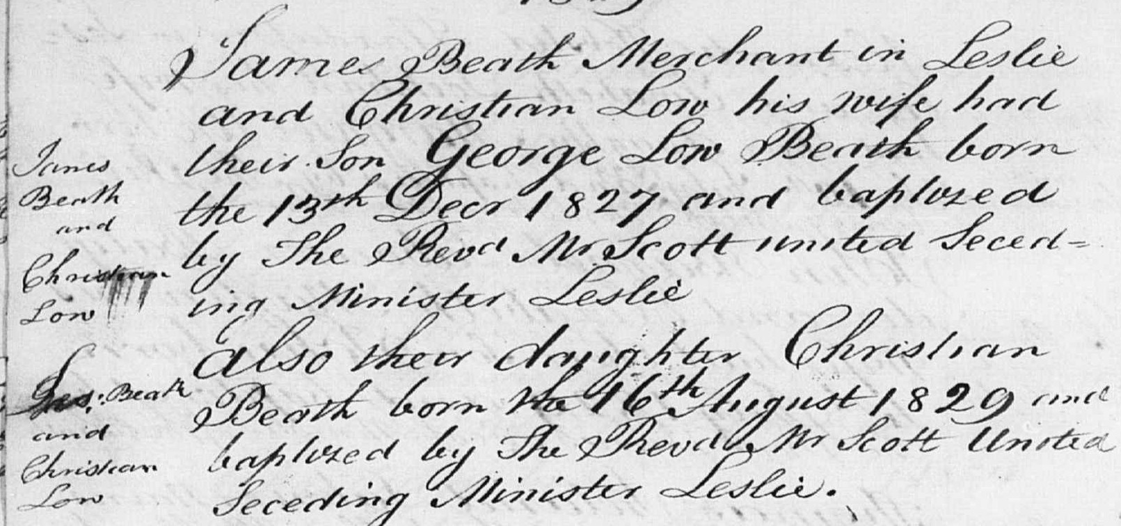 - b.08 Dec 1753 in Leslie, Fife, Scotland d.03 Jul 1829 in Leslie, Fife, Scotland