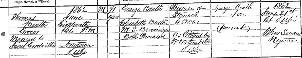 - b.25 Apr 1798 in Leslie, Fife, Scotland d.18 Jun 1862 in Newtown, Leslie, Fife, Scotland