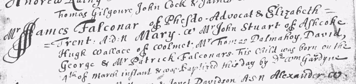 - b.16 Aug 1648 in Phesdo, Kincardineshire, Scotland d.09 Jun 1705 in Edinburgh, Midlothian, Scotland
