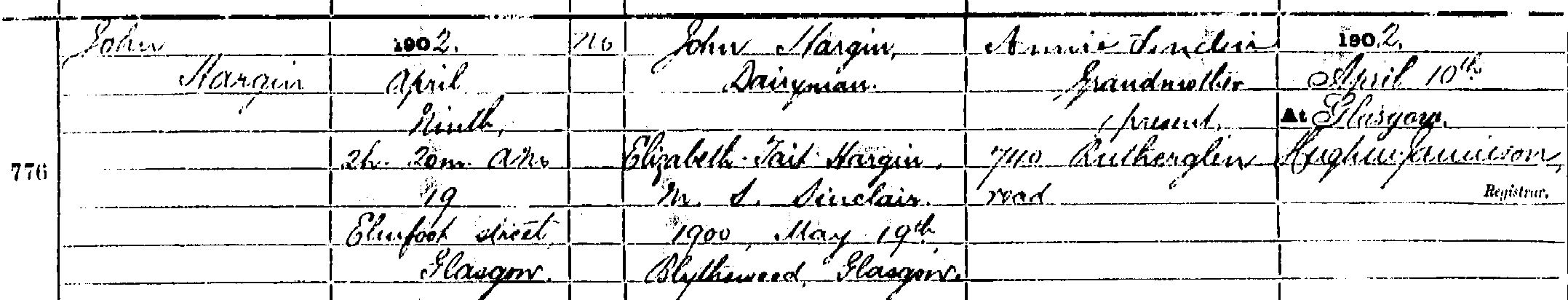 - b.09 Apr 1902 in Glasgow, Lanarkshire, Scotland d.< 1904 in Glasgow, Lanarkshire, Scotland