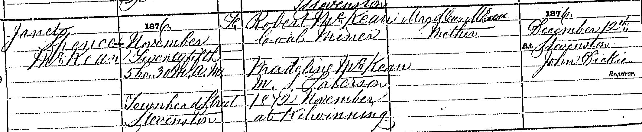 This page is within a frameset. View the entire genealogy report of McKean families, or surname index of McKean pedigrees or report summary McKean heritage from 'Beath and Tait Ancestor Tree 2016'.
