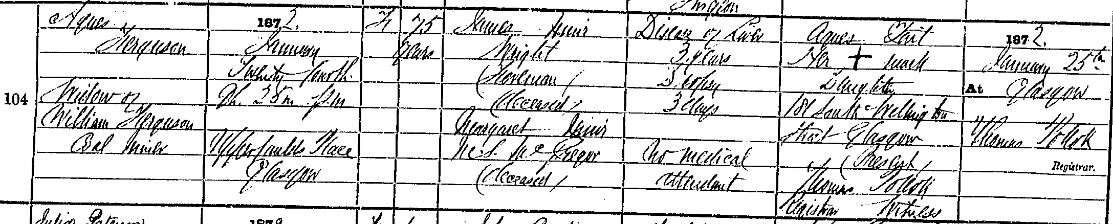 This page is within a frameset. View the entire genealogy report of Muir families, or surname index of Muir pedigrees or report summary Muir heritage from 'Beath and Tait Ancestor Tree 2016'.