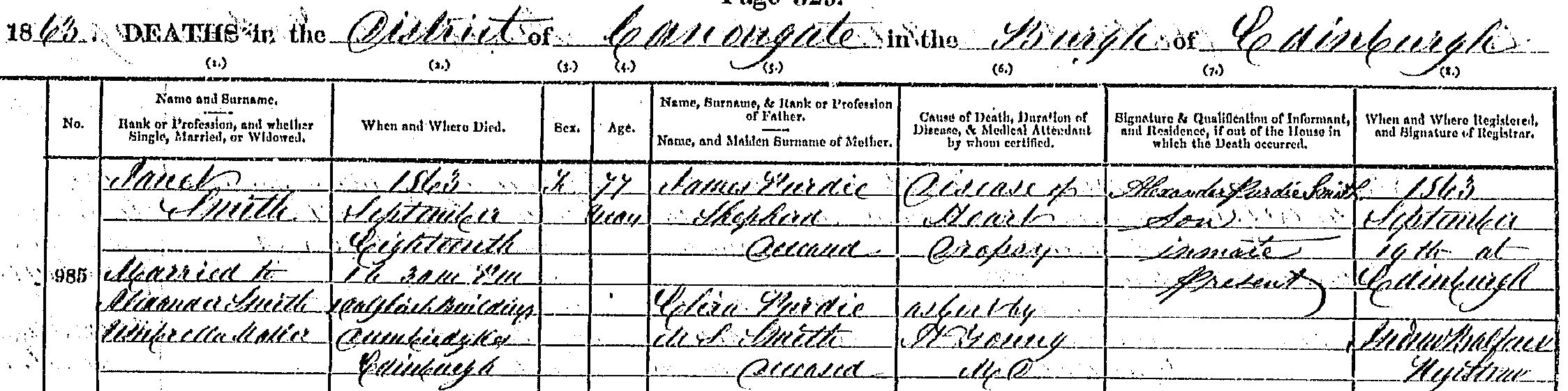 Details of Janet's family with Alexander (or Ramsey) Smith