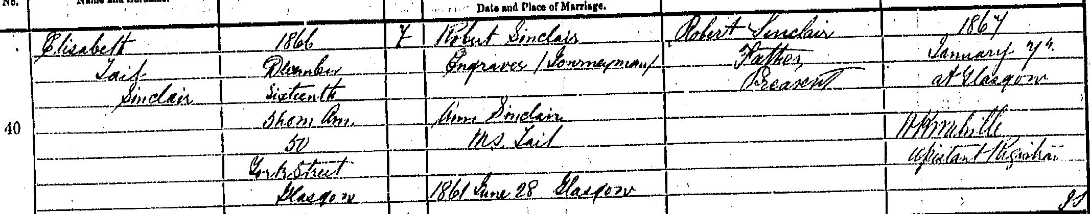 - b.1841 in Gorbals, Glasgow, Lanark, Scotland d.20 Jan 1913 in Glasgow, Lanarkshire, Scotland
