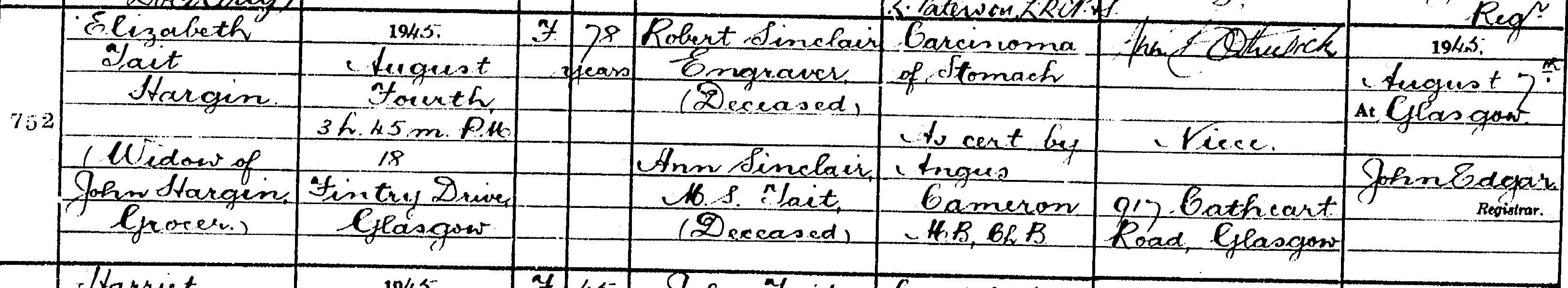 - b.16 Dec 1866 in Glasgow, Lanarkshire, Scotland d.04 Aug 1945 in Cathcart, Glasgow, Lanark, Scotland