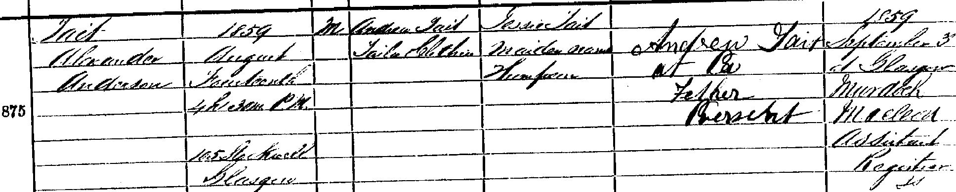 - b.14 Aug 1859 in Clyde, Glasgow, Lanark, Scotland d.Dec 1864