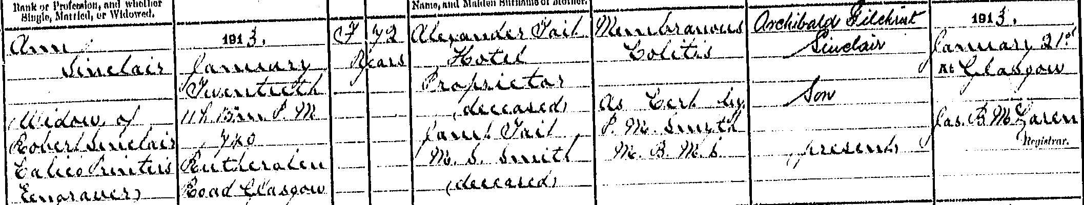 - b.1841 in Gorbals, Glasgow, Lanark, Scotland d.20 Jan 1913 in Glasgow, Lanarkshire, Scotland