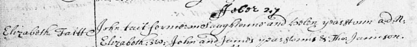 - b.27 Feb 1671 in Corstorphine, Edinburgh, Midlothian, Scotland