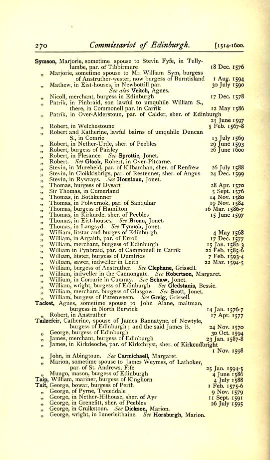West Lothian, & Midlothian; Gloucestershire: Edinburgh; Bristol- Commissariot Record of Edinburgh, Register of Testaments, 1514-1600; Bristol Wills, 1572-1792