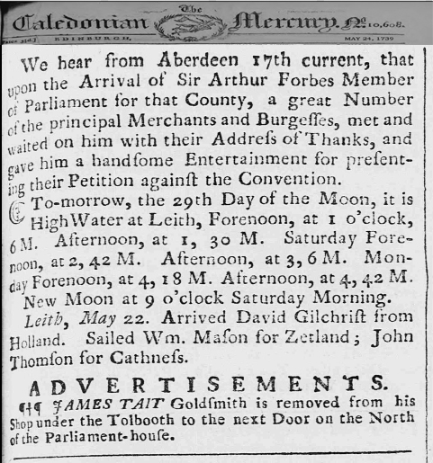 - b.03 Jul 1679 in Corstorphine, Edinburgh, Midlothian, Scotland d.~ 1751