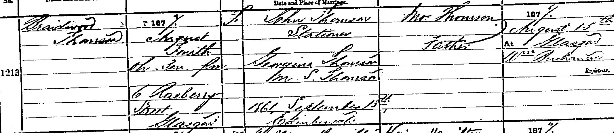 - b.1841 in Edinburgh, Midlothian, Scotland d.16 Mar 1909 in Glasgow, Lanarkshire, Scotland