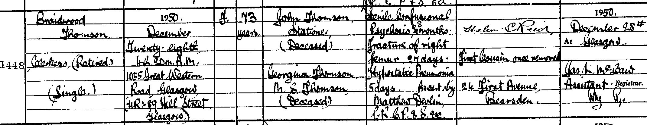 - b.04 Aug 1877 in Glasgow, Lanarkshire, Scotland d.28 Dec 1950 in Glasgow, Lanarkshire, Scotland