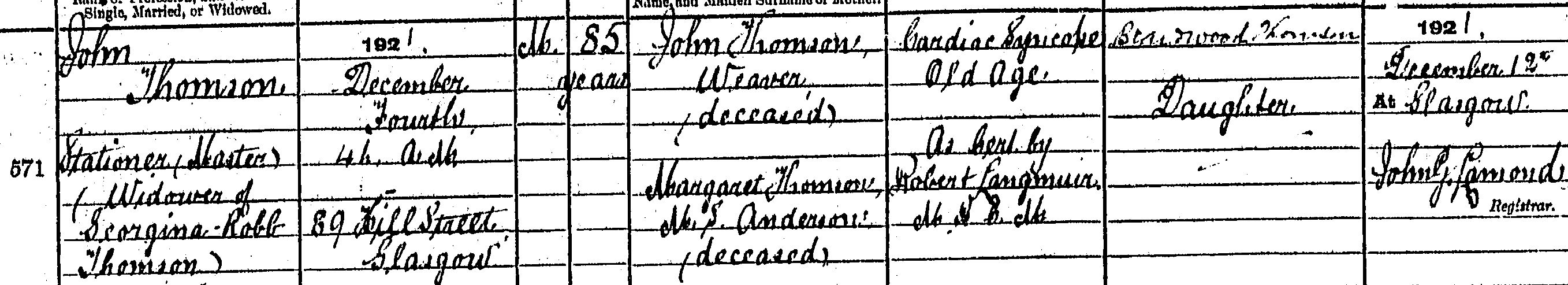This page is within a frameset. View the entire genealogy report of Thomson families, or surname index of Thomson pedigrees or report summary Thomson heritage from 'Beath and Tait Ancestor Tree 2016'.